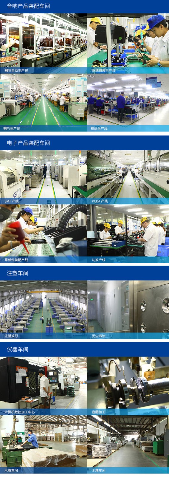 公司具有从扬声器关键零部件,到扬声器单元、音箱系统及电子功放一体化的综合配套能力,六十九年的历史、六十九年的专注、六十九年的积淀凝聚了一批优秀的电声行业管理及研发人才,形成了自己独特、有效的科研攻关体系,建立了一支技术专业齐全、综合实力雄厚的研发队伍。685名研发人员,246项专利设计(国内)+6项国外专利,每年开发200多项新产品,设备先进的消音室、声学测试中心,297条各类音响产品生产线,扬声器日生产能力19万只,系统制造日生产能力7.8万套,锂离子电池日生产15万只的生产能力让国光能够满足市场不同领域和不同客户的研发和生产需求。